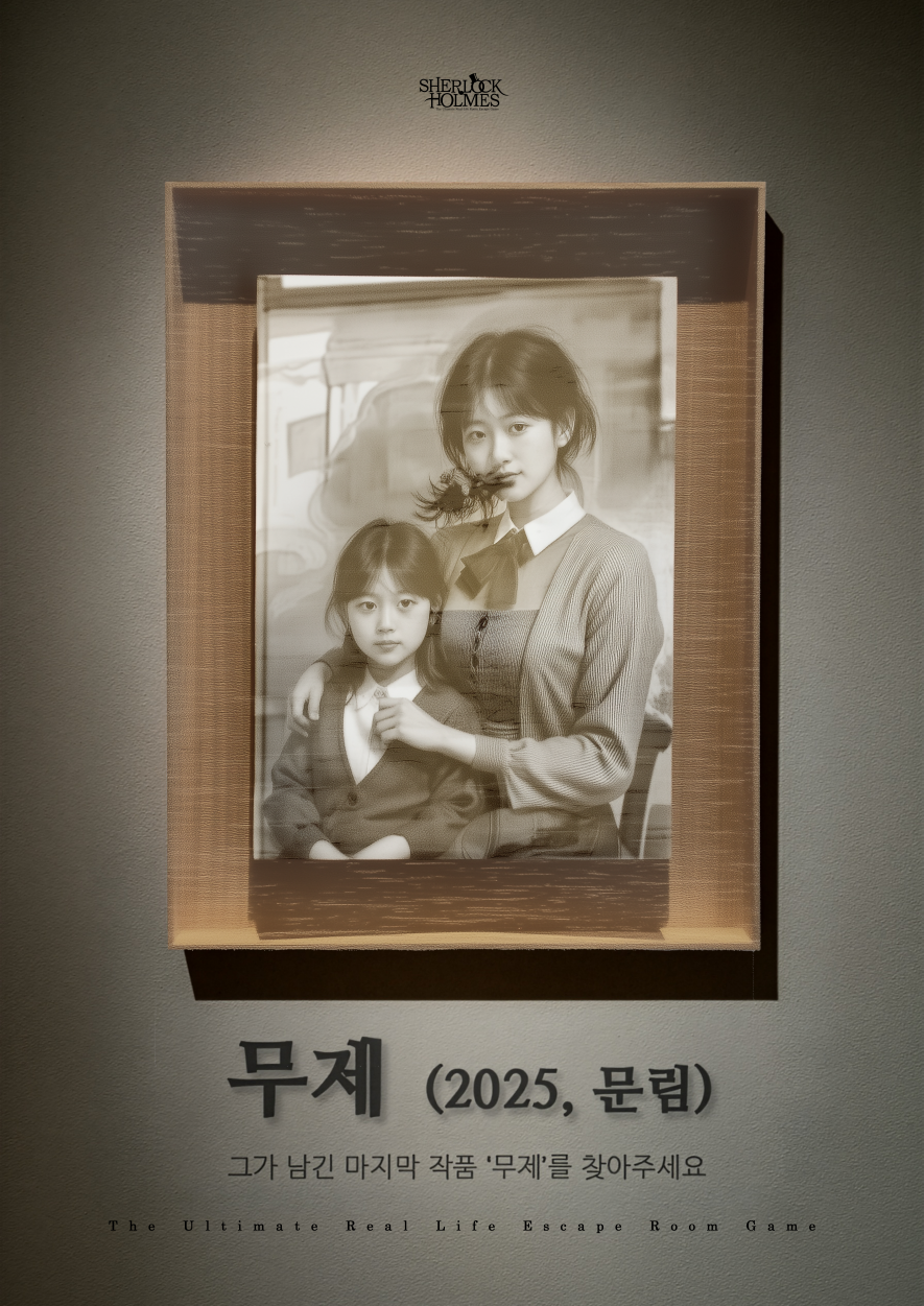 난이도 : ★★ 인원 : 2 ~ 6명 시간 : 60분 장르 : 추리 의뢰를 하나 맡기려 합니다. 좀 큰 건이에요. 미술계의 거장 `문림` 작가를 알고 계시죠? 그가 별세하기 직전 마지막 작품을 남겼다는 정보가 입수됐어요. 맞아요. 그의 마지막 작품, "무제" 를 찾아주세요. 문림 아트 센터에 그 단서를 남겨놨다고 하더군요. 자세한 정보는 그쪽으로 넘겨드리죠 |