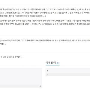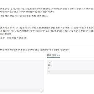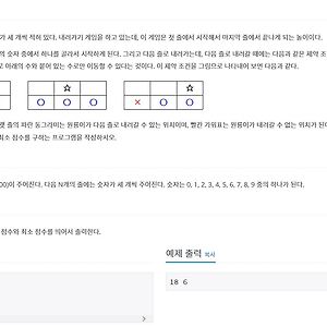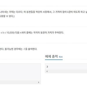 Algorithm73 [백준][5582번][DP] 공통 부분 문자열 공통 부분 문자열 https://www.acmicpc.net/problem/5582 1234567891011121314151617181920212223242526272829#include // a 가 빠르면 0 b가 빠르면 1int Dp[4001][4001]; int main(){ int max = 0; char A[4001]; char B[4001]; scanf("%s", A); scanf("%s", B); for (int i = 0; A[i] != 0; i++) for (int j = 0; B[j] != 0; j++) { if (A[i] == B[j]) { if (i == 0 || j == 0) Dp[i][j] = 1; else Dp[i][j] = Dp[i - 1][j - 1] + 1; if (max 2016. 10. 12. [백준][11060번][DP] 점프 점프 점프점프 https://www.acmicpc.net/problem/11060 1234567891011121314151617181920212223242526272829#include int main() { int N; int Dp[1001]={0,}; Dp[1]=1; scanf("%d",&N); for(int i=1;i 2016. 10. 5. [백준][9084번][DP] 동전 동전 https://www.acmicpc.net/problem/9084 123456789101112131415161718192021222324252627282930313233343536#include int value[10001]={0,}; int main() { int testcase; scanf("%d", &testcase); while(testcase--){ int coinNum; int coin[21]={0,}; for(int i=0;i 2016. 10. 5. [백준][1937번][DP] 욕심쟁이 판다 욕심쟁이 판다. https://www.acmicpc.net/problem/1937 12345678910111213141516171819202122232425262728293031323334353637383940414243444546474849505152535455565758596061626364656667//gcc 4.9.3 #include int map[501][501];int visit[501][501];int N; int max=0; int vectX[4] = {0,1,0,-1};int vectY[4] = {1,0,-1,0}; void dfsMap(int y, int x){ int nextX,nextY; int value=0; for(int i=0;i=N || nextX=N || nextY 2016. 10. 4. [백준][2096번][DP] 내려가기 내려가기 https://www.acmicpc.net/problem/2096 1 2 3 4 5 6 7 8 9 10 11 12 13 14 15 16 17 18 19 20 21 22 23 24 25 26 27 28 29 30 31 32 33 34 35 #include #define Max(a,b) ((a) > (b) ? (a) : (b)) #define Min(a,b) ((a) DP[N-1][0] 과 DP[N-1][1] 과 DP[N-1][2] DP[N][2] -> DP[N-1][1] 과 DP[N-1][2] 위에 같이 연관이 있는걸 알 수 있다 즉 DP 테이블의 이전의 값과 현재의 tower값을 더해서 우리가 원하는 최대값 혹은 최소값을 구할 수 있게 되는 것이다. 2016. 10. 1. [백준][2294번][DP] 동전 2 동전 2 https://www.acmicpc.net/problem/2294 12345678910111213141516171819202122232425262728293031323334353637383940414243444546474849505152#include int main(void){ int N,K; int coinC[10001]={0,}; int coin[101]={0,}; scanf("%d %d",&N,&K); for(int i=0;i10000) continue; coinC[coin[i]]=1; } for(int i=1;i 2016. 9. 30. 이전 1 2 3 4 ··· 13 다음 728x90
