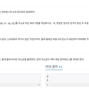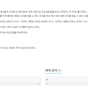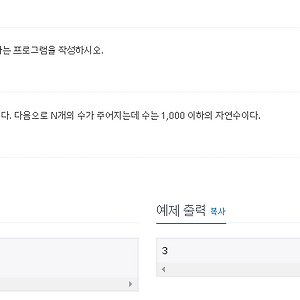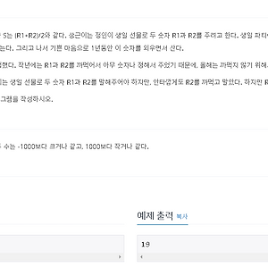Algorithm/수학11 [백준][2010번][수학] 플러그 플러그https://www.acmicpc.net/problem/2010 123456789101112131415#include int main(void){ int N; int result = 0; scanf("%d", &N); for (int i = 0; i 2016. 4. 24. [백준][1110번][수학] 더하기 사이클 더하기 사이클https://www.acmicpc.net/problem/1110 1234567891011121314151617181920#include int main(void){ int number; int count = 0; int A, B, C , Add; scanf("%d", &number); Add = number; while (Add != number || count==0){ A = Add / 10; B = Add % 10; C = (A + B) % 10; A = B; B = C; Add = A * 10 + B; count++; } printf("%d\n", count); }Colored by Color Scriptercs1. 결국 이 문제는 실제로 문제를 그대로 실행하면서 끝날때 까지 하면 된다. 2016. 4. 24. [백준][3046번][수학] R2 R2https://www.acmicpc.net/problem/3046 1234567#include int main(void){ int R1, S; scanf("%d %d", &R1, &S); printf("%d\n", 2 * S - R1);}Colored by Color Scriptercs1. 간단하다 2개의 숫자니 평균은 (R1+R2)/2 = S 이다 즉 R2 = 2*S -R1 이 되는 것이다. 2016. 4. 24. [백준][1549번][수학] K K https://www.acmicpc.net/problem/15491234567891011121314151617181920212223242526272829303132333435363738394041424344454647484950515253545556575859606162636465666768697071727374757677787980818283848586878889909192939495#include #include #include using namespace std; struct indexValue{ long long value; int index; }; long long A[4005];indexValue B[4005]; //0 은 값어치 1은 인덱스 값 저장할 곳long long minA[2] =.. 2016. 3. 27. [백준][1016번][수학] 제곱 ㄴㄴ수 제곱 ㄴㄴ 수 https://www.acmicpc.net/problem/10161234567891011121314151617181920212223242526272829303132333435363738#include long long numbers[1000001];long long prinum[10000]; int main(void){ long long max, min; long long num; int prinum_num = 0; int count = 0; scanf("%lld %lld", &min, &max); for (long long i = 2; i*i 2016. 3. 27. [백준][1978번][수학] 소수찾기 소수 찾기 https://www.acmicpc.net/problem/19781234567891011121314151617181920212223242526272829303132333435363738394041#include int main(void){ int num; int numbers[1000]; int count = 0; scanf("%d", &num); for (int i = 0; i 2016. 3. 27. 이전 1 2 다음 728x90