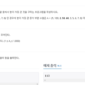 Algorithm73 [백준][1699번][DP] 제곱수의 합 제곱수의 합https://www.acmicpc.net/problem/1699 1234567891011121314151617181920#include int main(void){ int N; int Dp[100001] = {}; scanf("%d", &N); for (int i = 1; i 2016. 4. 14. [백준][2579번][DP] 계단 오르기 계단 오르기https://www.acmicpc.net/problem/2579 1234567891011121314151617181920212223242526272829#include int max(int a, int b){ return a > b ? a : b;} int main(void){ int N; int stair[305] = {}; int Dp[305] = {}; scanf("%d", &N); for (int i = 1; i 2016. 4. 14. [백준][1912번][DP] 연속합 연속합https://www.acmicpc.net/problem/1912 1234567891011121314151617181920212223242526272829303132#include int main(void){ int N; int number[100010] = {}; int Dp[100010] = {}; int max; scanf("%d", &N); for (int i = 1; i 2016. 4. 14. [백준][11054번][DP] 가장 긴 바이토닉 부분 수열 가장 긴 바이토닉 부분 수열https://www.acmicpc.net/problem/11054 1234567891011121314151617181920212223242526272829303132333435363738394041424344454647#include int main(void){ int N; int Dp[2][1010] = {}; int A[1010] = {}; int max = 0; scanf("%d", &N); for (int i = 1; i A[j]){ if (maxA 2016. 4. 14. [백준][11722번][DP] 가장 긴 감소하는 부분 수열 가장 긴 감소하는 부분 수열https://www.acmicpc.net/problem/11722 1234567891011121314151617181920212223242526272829#include int main(void){ int N; int Dp[1010] = {}; int A[1010] = {}; int max = 0; scanf("%d", &N); for (int i = 1; i 2016. 4. 14. [백준][11055번][DP] 가장 큰 증가 부분 수열 가장 큰 증가 부분 수열 https://www.acmicpc.net/problem/11055 1234567891011121314151617181920212223242526272829#include int main(void){ int N; int Dp[1010] = {}; int A[1010] = {}; int max = 0; scanf("%d", &N); for (int i = 1; i 2016. 4. 14. 이전 1 2 3 4 5 6 7 ··· 13 다음 728x90